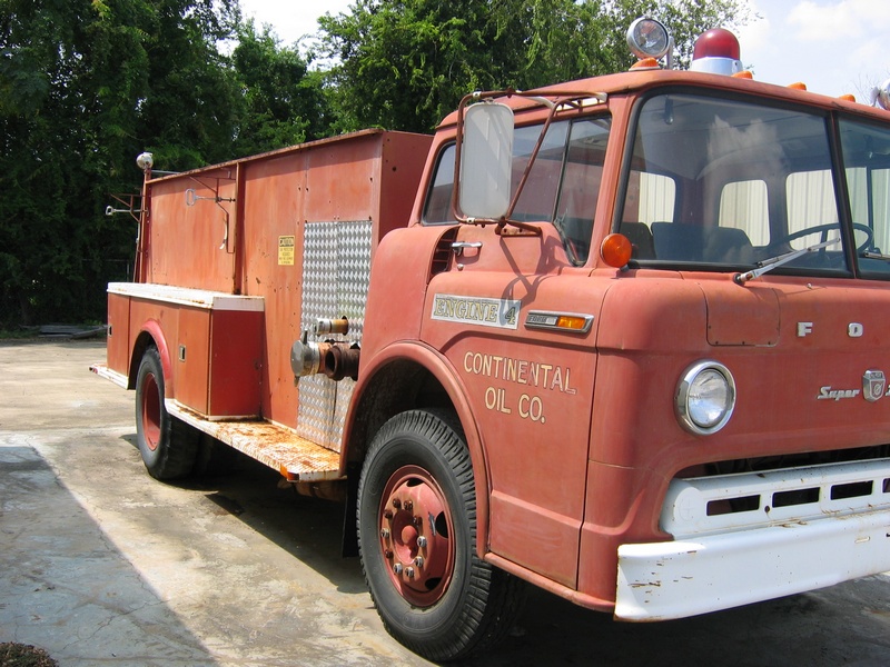 This is a 1969 Ford Fire Truck. It has an 850 gasoline engine in it. It starts up on the first try and runs perfect. It was bought brand new by Continental Oil Company (now called ConocoPhillips). It's a pumper truck - it holds water. It has the original red paint on it. It has all the original paperwork,owners manual and service history (oil changes etc...). It was bought a couple years ago from Conoco. That would make it have only two owners. It's located near Lake Charles, Louisiana. This would be good for a fraternity, Conoco collector, fireman or whomever wants it. It also holds 1,000 gallons and pumps 1,000 gallons a minute. It was bought for $32,000 in 1969. If you're interested, please email me at: iam @ Cory Cochran.com (no spaces - I did that so I won't get spam) Below are some recent pictures taken. If you want more, or the higher quality and more detailed pictures, just let me know. Oh yeah... some of the pictures are pinkish looking. I'm sorry about that, that's the cameraman's fault. UPDATE: SOLD!!!
